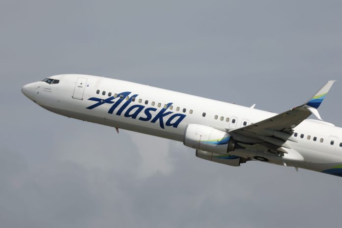 An Alaska Airlines Boeing 737 airplane departs Los Angeles International Airport en route to Washington, D.C., in Los Angeles, March 30, 2025.