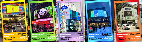 CHENGDU, China, Oct. 18, 2025 /PRNewswire/ — According to Sichuan International Communication Center, on October 17 (Beijing time), the “Sichuan Ease” cultural tourism logo made its global debut simultaneously across five landmark locations worldwide, including Times Square in New York, Westfield Shopping Centre in London, Cross Shinjuku Vision in Tokyo, Wilkie Edge in central Singapore, and MBK Center in Bangkok. The eye-catching visual display aimed to introduce Sichuan’s rich cultural heritage and stunning natural landscapes to a wider international audience.