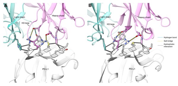 For a designed antibody against PD-L1, Galux experimentally determined the antibody–antigen complex using cryo-EM. The designed antibody, GX-aPDL1-3, was highly distinct from all known PD-L1 antibodies in the PDB , sharing at most 43% sequence identity in CDR loops and only 27% in the critical H3 loop. Despite this novelty, the designed structure closely matched the experimentally resolved structures, with an interface RMSD of 1.1 Å, demonstrating atomic-level precision.