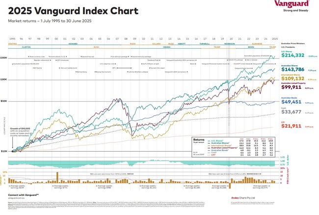 Vanguard’s Index Chart shows how long-term investing works. Credit: Supplied